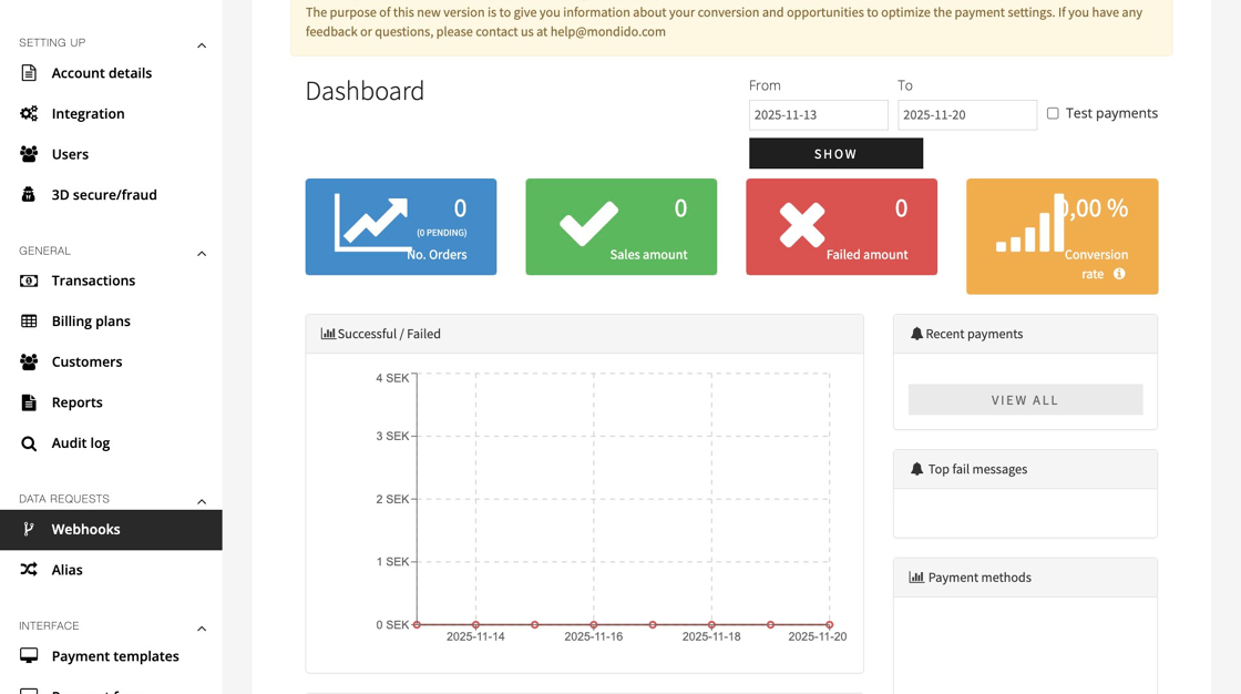 Go to Payment Form https://admin.mondido.com/en/payment-formin the dashboard and run a test payment.
