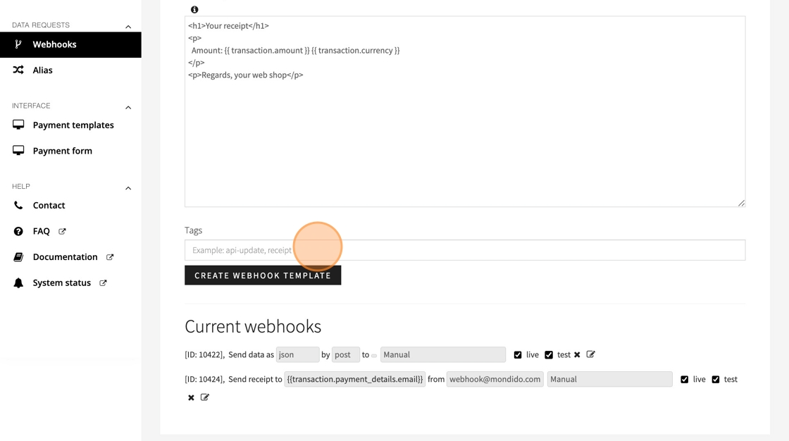 11. Click "Create Webhook Template"