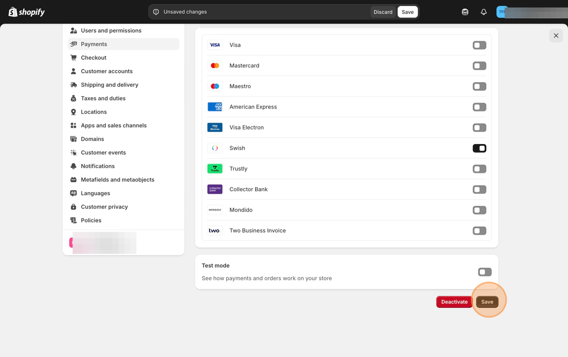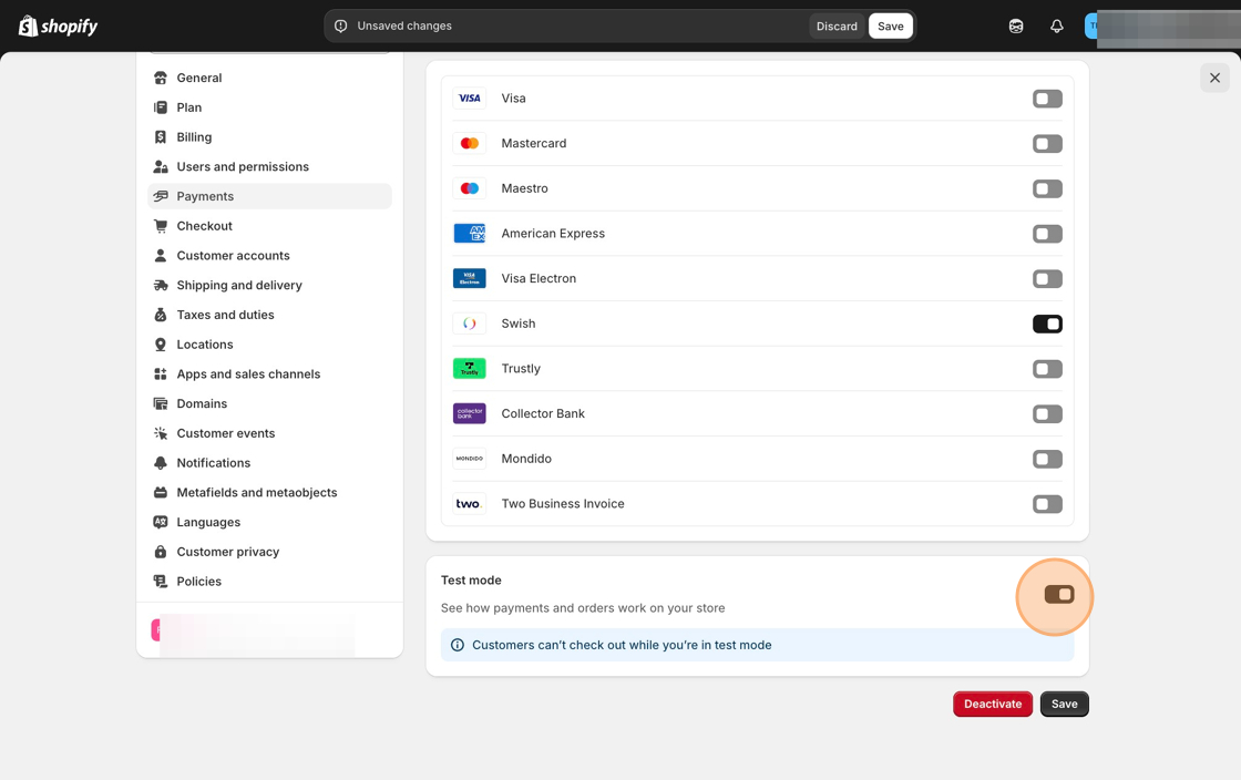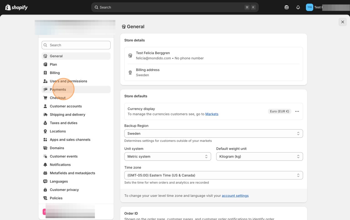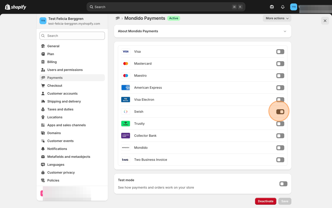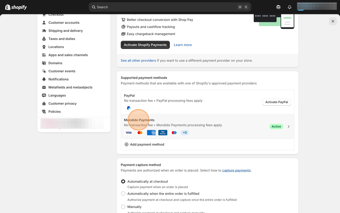 Tip: Try adding something in your store to the basket and proceed to the checkout to see that the options from Mondido are visible.