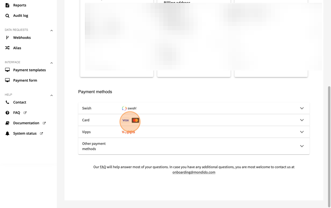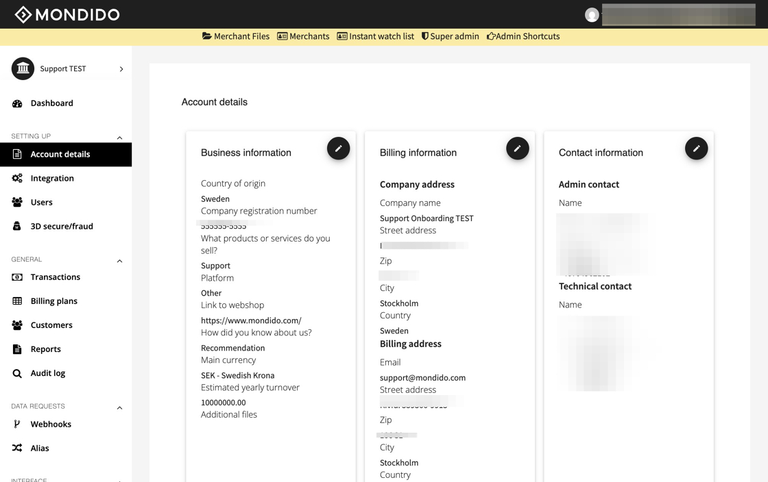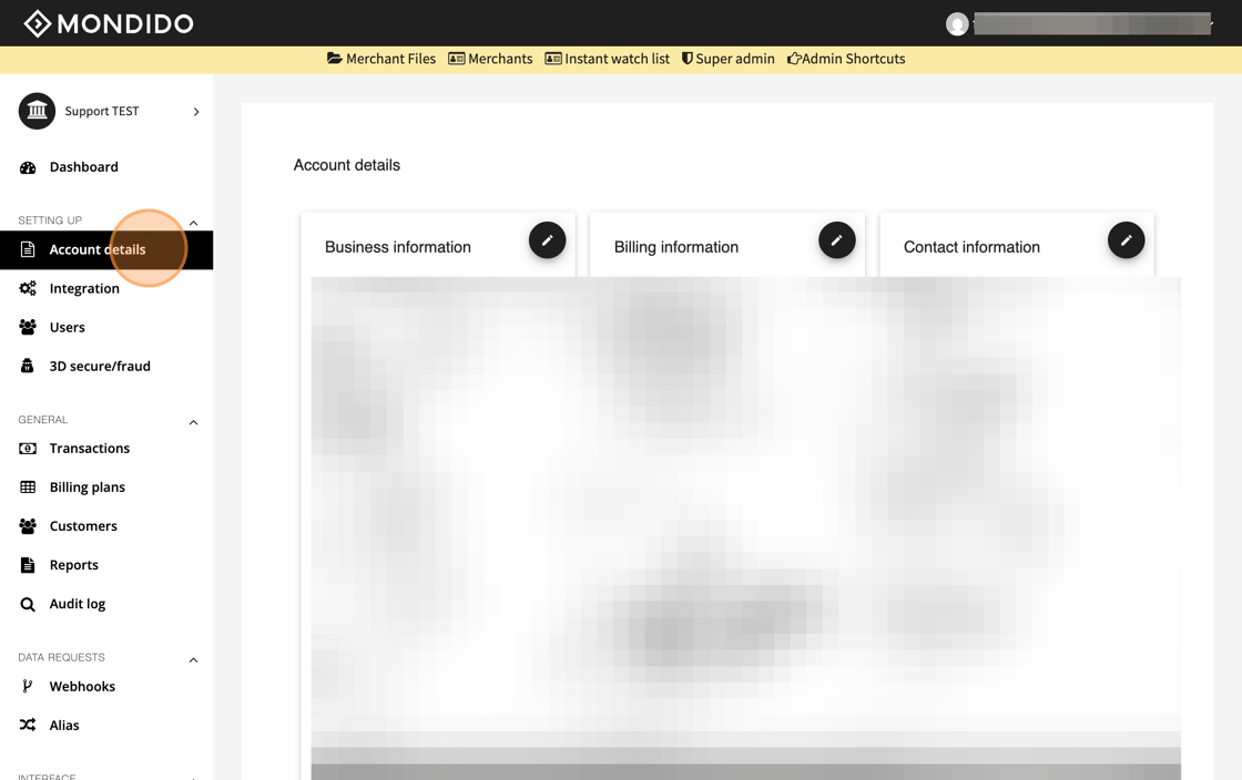 1. Navigate to https://admin.mondido.com/en/account-details