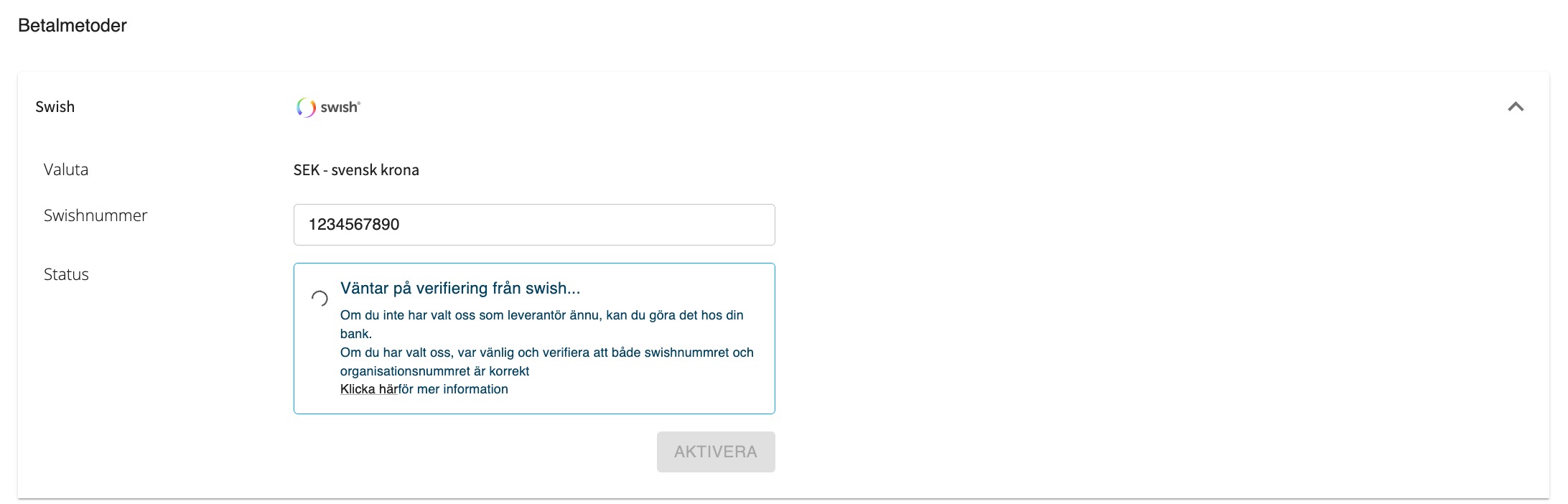 • Ditt Swish-avtal är aktivt och korrekt.